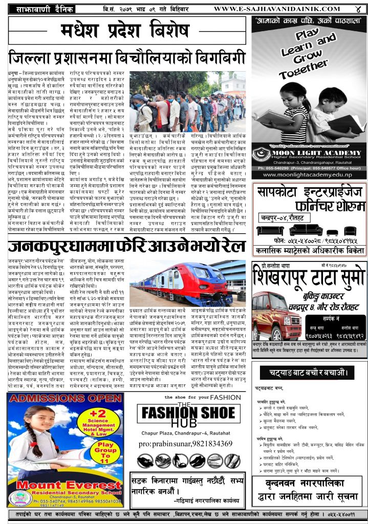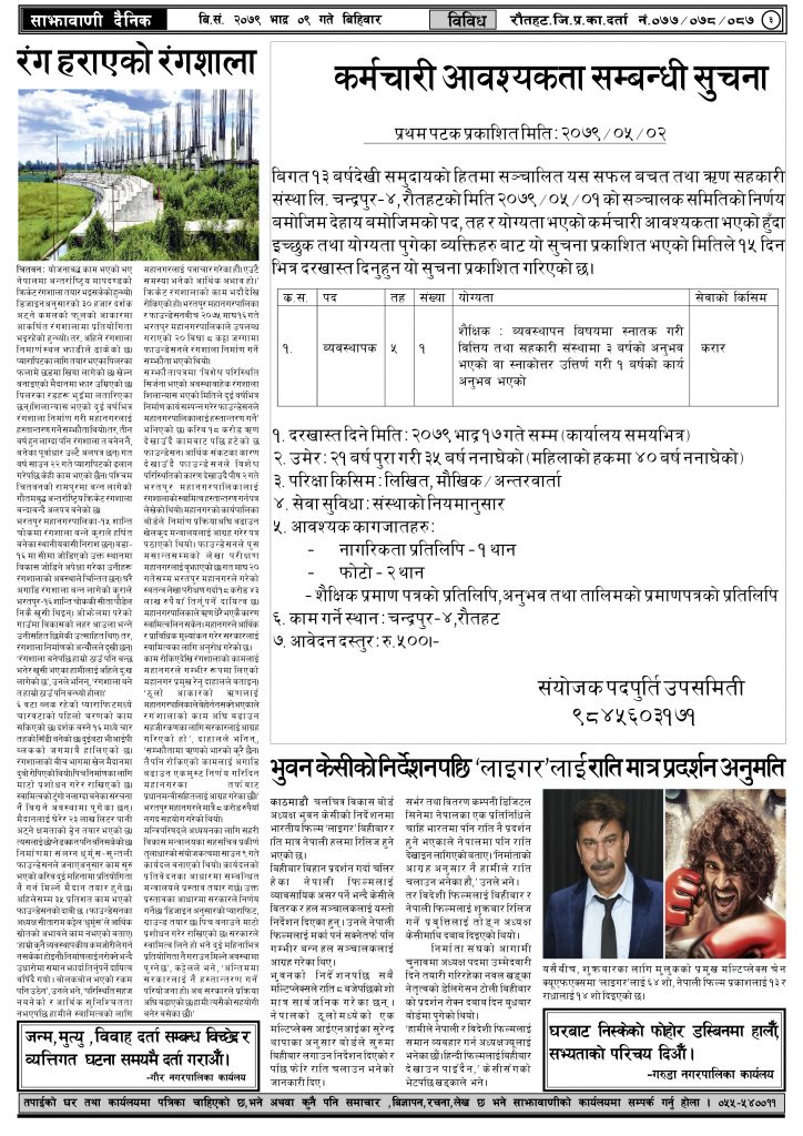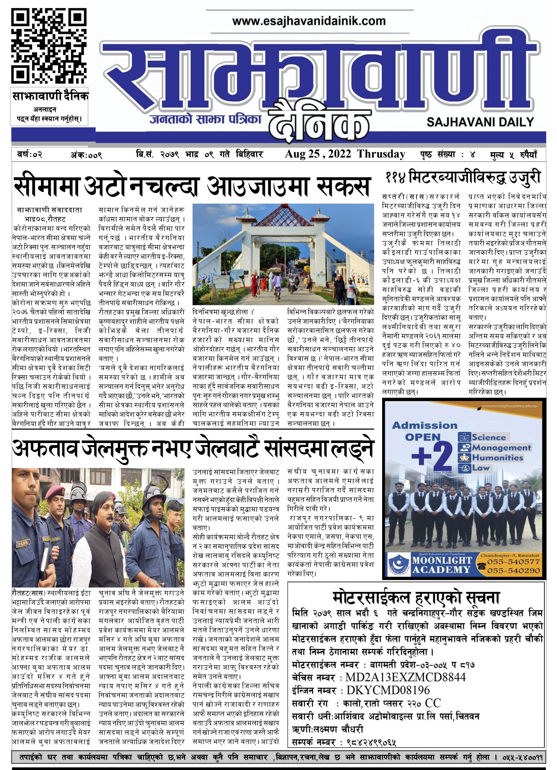 आवरण साझावाणी दैनिक भाद्र ०९ गतेको ई-पेपर साझावाणी दैनिक भाद्र ०९ गतेको ई-पेपर साझावाणी संवाददाता - ३ वर्ष अगाडि