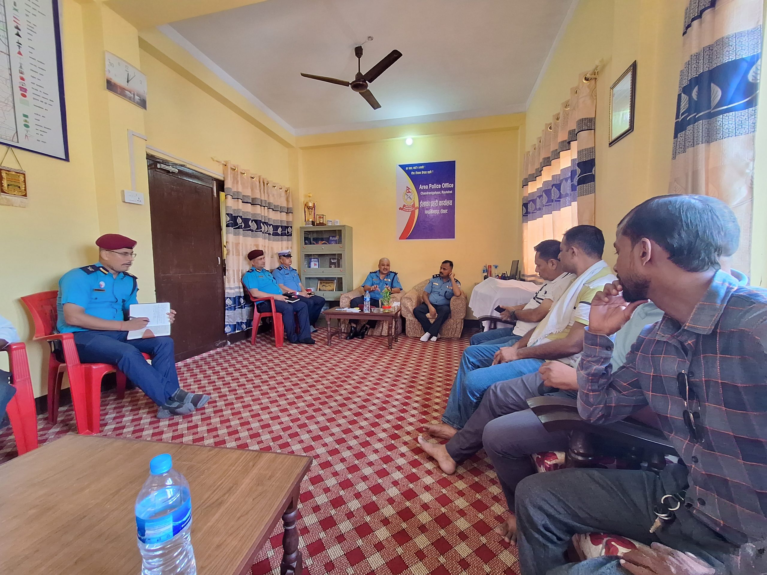 चन्द्रपुर: भर्खरै  रौतहट जिल्ला प्रहरीको कमाण्ड सम्हालेका प्रहरी उपरीक्षक महेन्द्र बहादुर श्रेष्ठ र चन्द्रनिगाहपुरका संचारकर्मी बिच चन्द्रनिगाहपुरमा परिचयात्मक तथा अन्र्तरक्रिया कार्यक्रम सम्पन्न भएको छ । मंगलबार इलाका प्रहरी कार्यालय चन्द्रनिगाहपुरमा पत्रकार र प्रहरी उपरिक्षक श्रेष्ठ बिच अन्तरक्रिया तथा परिचयात्मक कार्यक्रम भएको हो । कार्यक्रममा सुरक्षाको माम्लामा पत्रकारको साथ रहेको अपेक्षा गरेको प्रहरी उपरिक्षक श्रेष्ठले बताए । पत्रकार र प्रहरीको फिल्ड एकै प्रकारको र उदेश्य पनि एकै रहने हुदा सहकार्यको अपेक्षा गरको उनको भनाइ रहेको थियो । कार्यक्रममा नेपाल पत्रकार महासंघका केन्द्रिय सदस्य शिव पुरीले समग्र जिल्लाको अबस्था र प्रहरीले निभाउनु पर्ने भुमिका बारे धारणा राखेका थिए ।  चाडपर्व नजिकिदै  गर्दा चोरी को घटनाहरु बढ्ने भएको हुदा सुरक्षा ब्यवस्था चुस्त र दुरुस्त बनाउन समेत पुरिले आग्रह गरेका थिए।