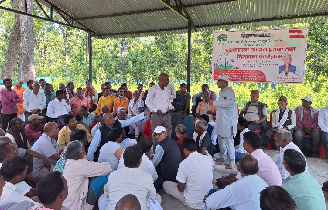 रौतहट,०२ कार्तिक हिन्दुधर्माबलम्बिहरुको महानचाड बडादशै, दिपाबली र छठ पर्बको उपलक्ष्यमा नेपाली काङ्ग्रेस रौतहट क्षेत्र नम्बर ४ ले शुभकामना आदान प्रदान तथा चियापान कार्यक्रम गरेको छ । सो कार्यक्रममा क्षेत्र र क्षेत्र बाहिरका उल्लेख्य जनसहभागि रहेको थियो । रौतहट क्षेत्रनम्बर ४ का प्रतिनिधि सभा सदस्य देबप्रसाद तिमल्सिनाको प्रमुख आतिथ्यतामा भएको शुभकामना आदान प्रदान नेपाली काग्रेस महासमिति सदस्य, महाधिबेशन प्रतिनिधि, क्षेत्रिया सभापति र पदाधिकारी, नगर सभापति र पदाधिकारी लगायत कार्यकर्ता र शुभचिन्तकहरुको बाक्लो उपश्थिती रहेको थियो । क्षेत्रिय सचिब बच्चु साह कानुले कार्यक्रमको संचालन गर्नु भएको थियो । शुभकामना आदान प्रदान कार्यक्रम लाई सम्बोधन गर्नुहुदै नेपाली काग्रेस महासमिति सदस्य एबम प्रतिनिधि सभा सदस्य देब प्रसाद तिमल्सिनाले वडादशैँको शुभकामना व्यक्त गर्दै सबैमा प्रगति उन्नतीको कामना गर्नुभएको छ । कार्यक्रममा क्षेत्र नम्बर ४ लगायत अन्य स्थानका काङ्ग्रेसका नेता, कार्यकर्ता र जनप्रतिनिधीहरुको उत्साहजनक उपस्थिती रहेको चन्द्रपुरका नगर सभापती मुकेश गिरीले जानकारी दिनु भयो ।