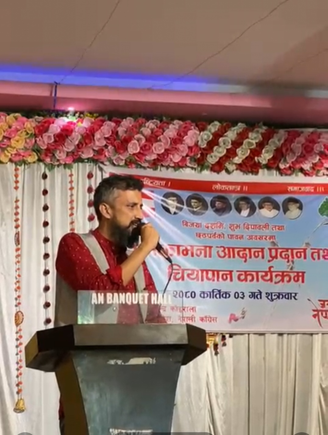 रौतहट: नेपाली कांग्रेस मधेश प्रदेश सदस्य रबिनचन्द्र कोइरालाले दशै तिहारकोको पुर्व सन्ध्यामा आज शुक्रबार शुभकामना आदानप्रधान कार्यक्रमको आयोजना गरेका हुन् । नेता कोइरालाको सभापति एवं मधेश प्रदेश सभा सदस्य, संविधानसभाका सदस्य तथा नेपाली कांग्रेस रौतहटका सभापति जितेन्द्र यादव सुनिलको प्रमुख आतिथ्यतामा सो कार्यक्रम होटल ए एन प्लाजामा सपन्न गरिएको छ।।यादवले चाडपर्वहरुलाई भडकिलो नबनाई आफनो संस्कृतिको जगेर्ना गर्ने गरि मनाउनुपर्ने बताउँनुभयो । उहाँले सम्पूर्ण नेपालीहरुलाई आफ्नो क्षमता, गच्छता र दिगो हुने गरि मनाउन आग्रह समेत गर्नुभयो । त्यस्तै उहाँले नेपालीहरुको सुख शान्ति र समृद्धिको कामना गर्दै शुभकामना व्यक्त समेत गर्नुभयो ।नेपालको परिवर्तन नेपाली कांग्रेसले नै गर्ने भएकाले सहमति, सहकार्य र एकताको आवश्यक रहेको पनि उनले प्रष्ट पारे । पार्टीभित्र केही विमत्ती हुन्छन् र त्यस्ता विमत्तीलाई बाहिर ल्याउने होइन्, पार्टी भीत्रै सहमति खोज्नुपर्ने उनको भनाइ छ । नेपाली कांग्रेसका नेता एवम् निवर्तमान प्रदेश सभा सदस्य धनलाला ठोकर,नेपाल पत्रकार महासघ का केन्द्रिय सदस्य शिव पुरी,नेपाल प्रेस युनियनका केन्द्रिय सदस्य संजय कार्की, महाधिवेशन प्रतिनिधि मिथलेश मिश्र, सुबास कोइराला , सरस्वती गिरी नेपाली कांग्रेसबाट निर्वाचित विभिन्न पालिकाको जनप्रतिनिधिहरु, जिल्ला समिति सदस्यहरु लगायत चन्द्रपुर नगरपलिकाका नगर प्रमुख सञ्जय कुमार काफ्ले, पार्टीका विभिन्न जिम्मेवारीमा रहेका नेता कार्यकर्ता लगायतको उपस्थितिमा भएको कार्यक्रममा शुभकामना मन्तव्य राख्दै बोल्ने बक्ताहरुले एक अर्कामा चिनजान गर्ने सहज पाटो भएको नेपाली काङ्ग्रेस चन्द्रपुर नगरपालिका वार्ड न ५ का सभापति काल्याण कार्कीले बताएका छन् ।