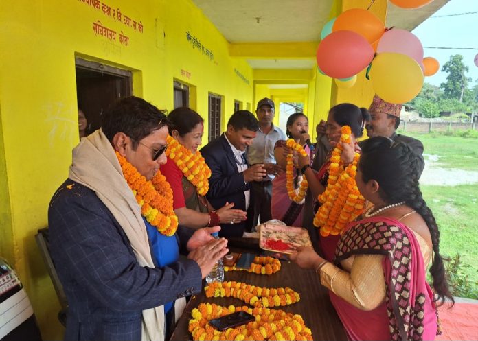 आवरण नगरप्रमुख काफ्ले द्धारा नवनिर्मित चारकोठे बिध्यालय भवनको उदघाटन