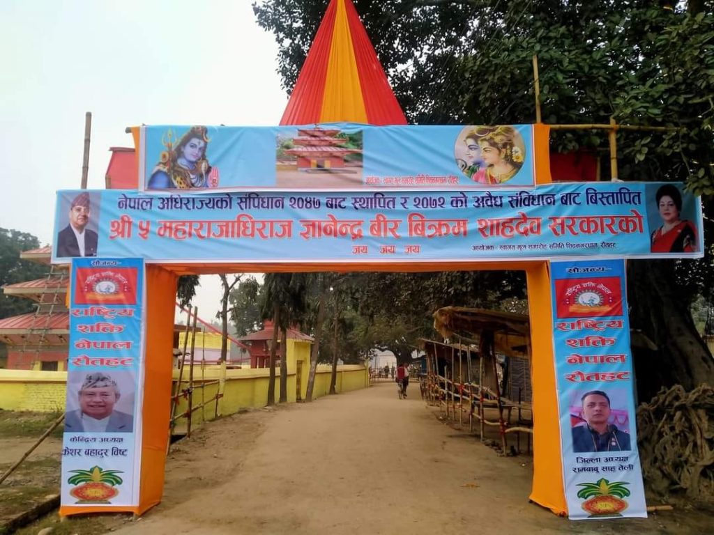 शिवनगर चौकबाट पैदल हिडेका पूर्वराजाका समर्थकले राजा आउ देश बचाउ भन्ने नारा लगाएका थिए । मुस्कान सहित पैदल हिँडेका उनलाई बाटोको दुवैतर्फ बसेका समर्थकले फूलमाला लगाई स्वागत गरेका थिए । पूर्व राजा ज्ञानेन्द्र शाहको सुरक्षामा नेपाल प्रहरी र सशस्त्र प्रहरीको बाक्लो उपस्थिति रहेको थियो। धार्मिक यात्रामा निस्केका पूर्वराजा शाह मधेश प्रदेशको बिभिन्न जिल्लाका मंन्दिरमा दर्शन गर्न जाँदा समर्थहरुको भिड लाग्ने गरेको छ ।